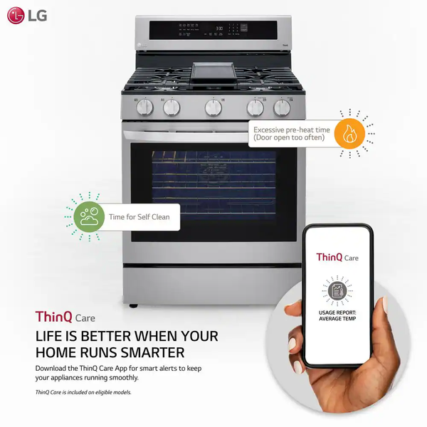 Use the LG ThinQ app to start the oven, set timers or check on dinner.