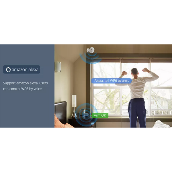 Connect Alarm to select Alexa-enabled devices to easily set your Alarm in home, away, and disarm modes and check the status of your security system with hands-free voice control. And when paired with Alexa Guard, you can set Guard to Away Mode to get Smart Alerts sent to your phone if your Echo device detects the sound of smoke alarms, carbon monoxide alarms, or glass breaking when you’re away.