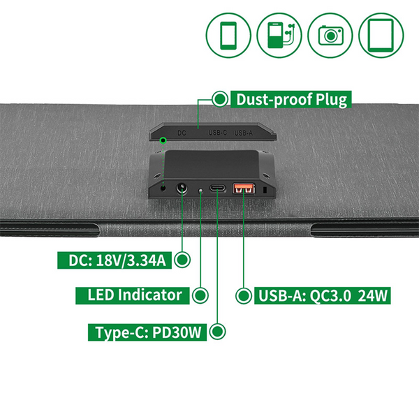 | Type C | 5V/3A, 9V/3A, 12V/2.5A, 15V/2A(PD30W) |