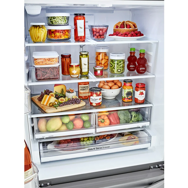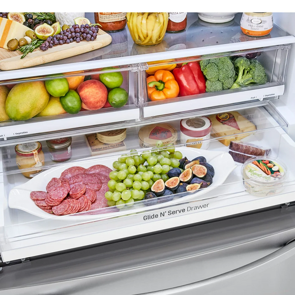 The 816 Large Capacity Refrigerator liters provides even more useful space to store more food. The Glide drawer N' Serve™ allows you to manage your storage more flexibly.