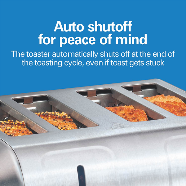 The toaster automatically shuts off at the end of the toasting cycle, even if toast gets stuck.