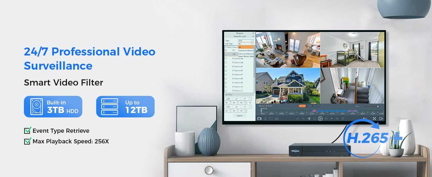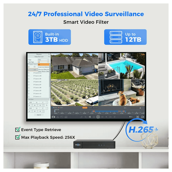 | Video processing | H.265 video compression, dual streaming |