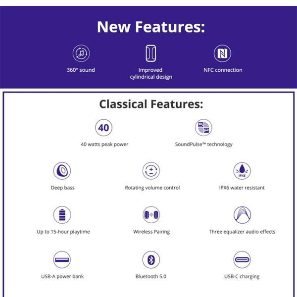 | Other Features | Stereo Pairing Built-in Powerbank |