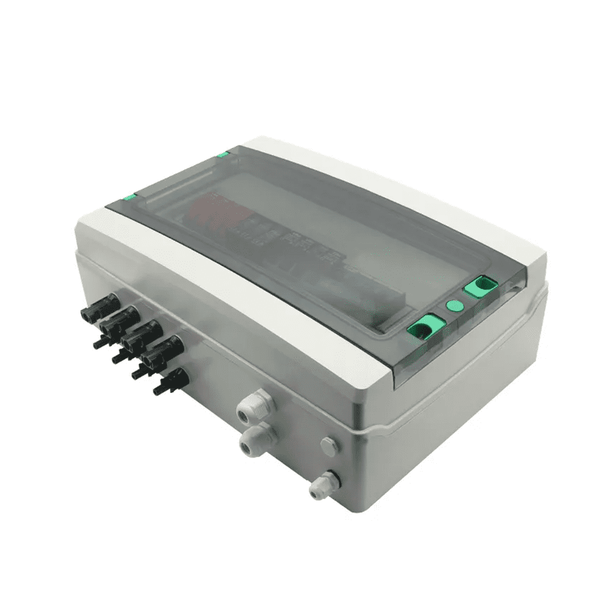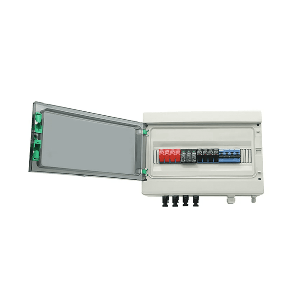 15A 1000V 4 IN 1 OUT Combiner Box Complete with Fuses, Breaker, Lightning Arrestor, Isolator & Transparent WP Cover