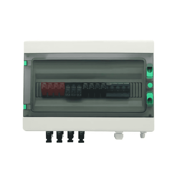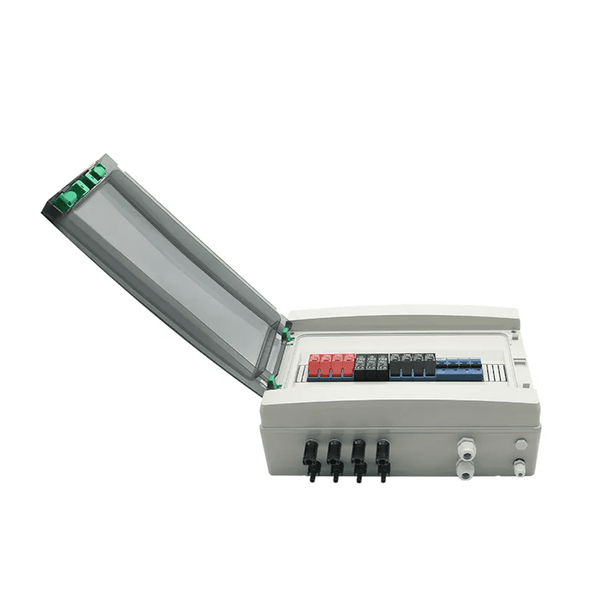 - 15A 1000V 4 IN 1 OUT Combiner Box Complete with Fuses, Breaker, Lightning Arrestor, Isolator & Transparent WP Cover