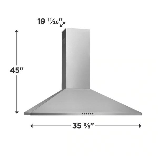 - Frigidaire 36" Wall-Mounted Chimney Stainless Steel Range Hood
