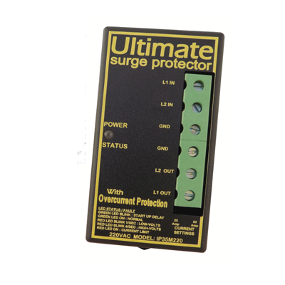 Intelligent protection is achieved using a high speed digital microprocessor. The clock speed of the microprocessor enable the Ultimate Surge Protectors to monitor the input voltage and over-current limit at a frequency of 1Mhz (Mega Hertz), which is approximately one million (1,000,000) times faster than the input AC voltage been monitored. Model IP Series protectors are built using a high quality plastic enclosure, which is fire retardant, none conductive and mechanically strong