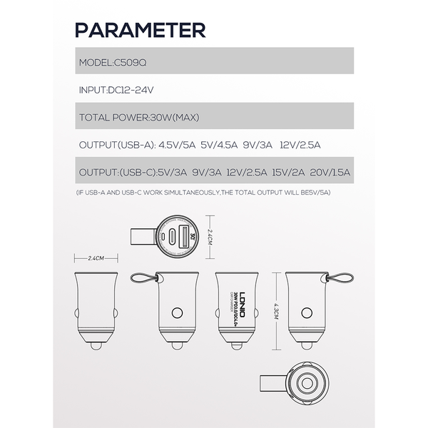 4.5V/5A 5V/4.5A 9V/3A 12V/2.5A (If USB-A and USB-C work simultaneously, the total output will be 5V/5A) |