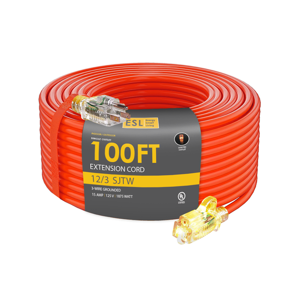 ESL 100FT Indoor/Outdoor Extension Cord - Orange