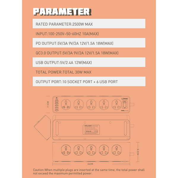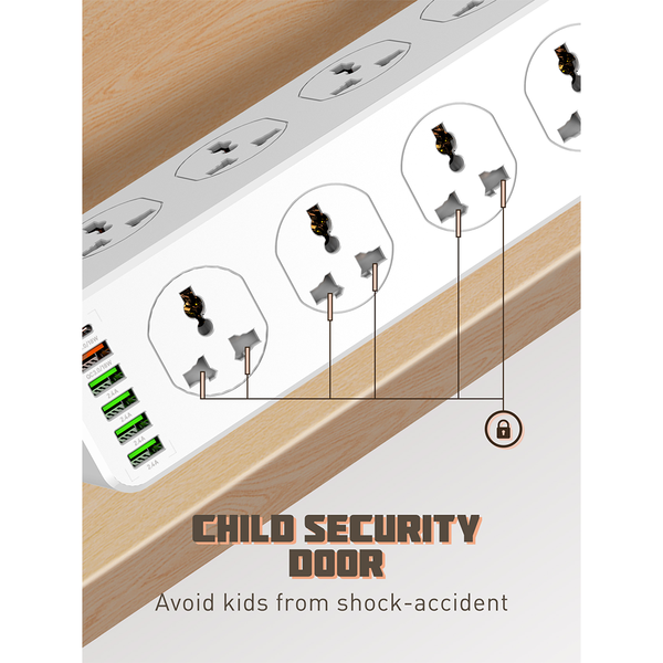 | Outlets : | 10 Universal outlets with 5 USB-A & 1USB-C |