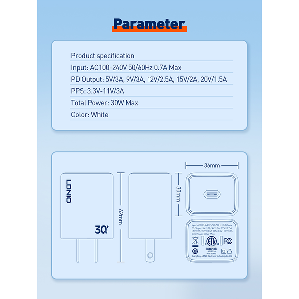 | PD Output 1: | 5V/3A, 9V/3A, 12V/2.5A, 15V/2A |